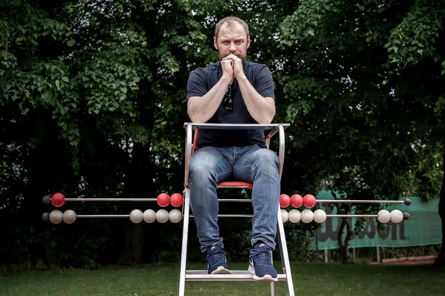 »Det skal ligne en pistol fra siden,« nærmest råber han til personen i den anden ende. Og gentager lidt højere: