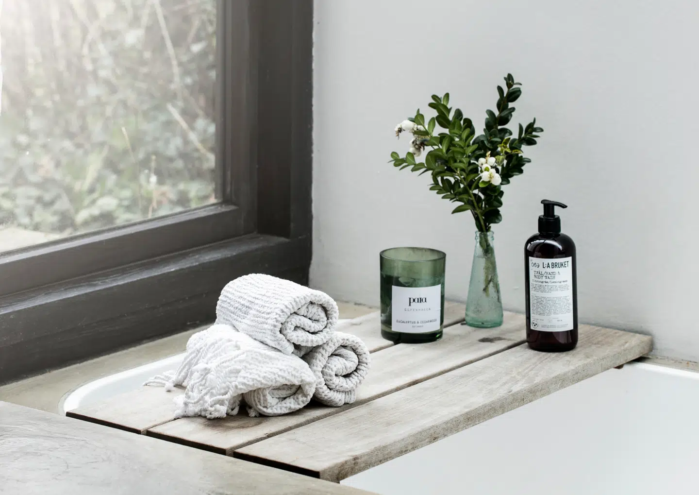 Det er ren luksus. Min mand tegnede også resten af badeværelset, som vi fik bygget af snedker Søren Risvang. Så Nikolaj har stået for rammerne, mens jeg står for det bløde indhold. Min grundlæggende filosofi er, at vi en travl hverdag skal føle os favnet af vores hjem og det, vi lever i. Her er naturens rene materialer som uld, cashmere, læder, silke og økologisk bomuld, som jeg selv arbejder med, fantastiske. Og så er de bløde materialer og farver en god kontrast til den lidt hårde 1970’er-stil, som huset er bygget i.«