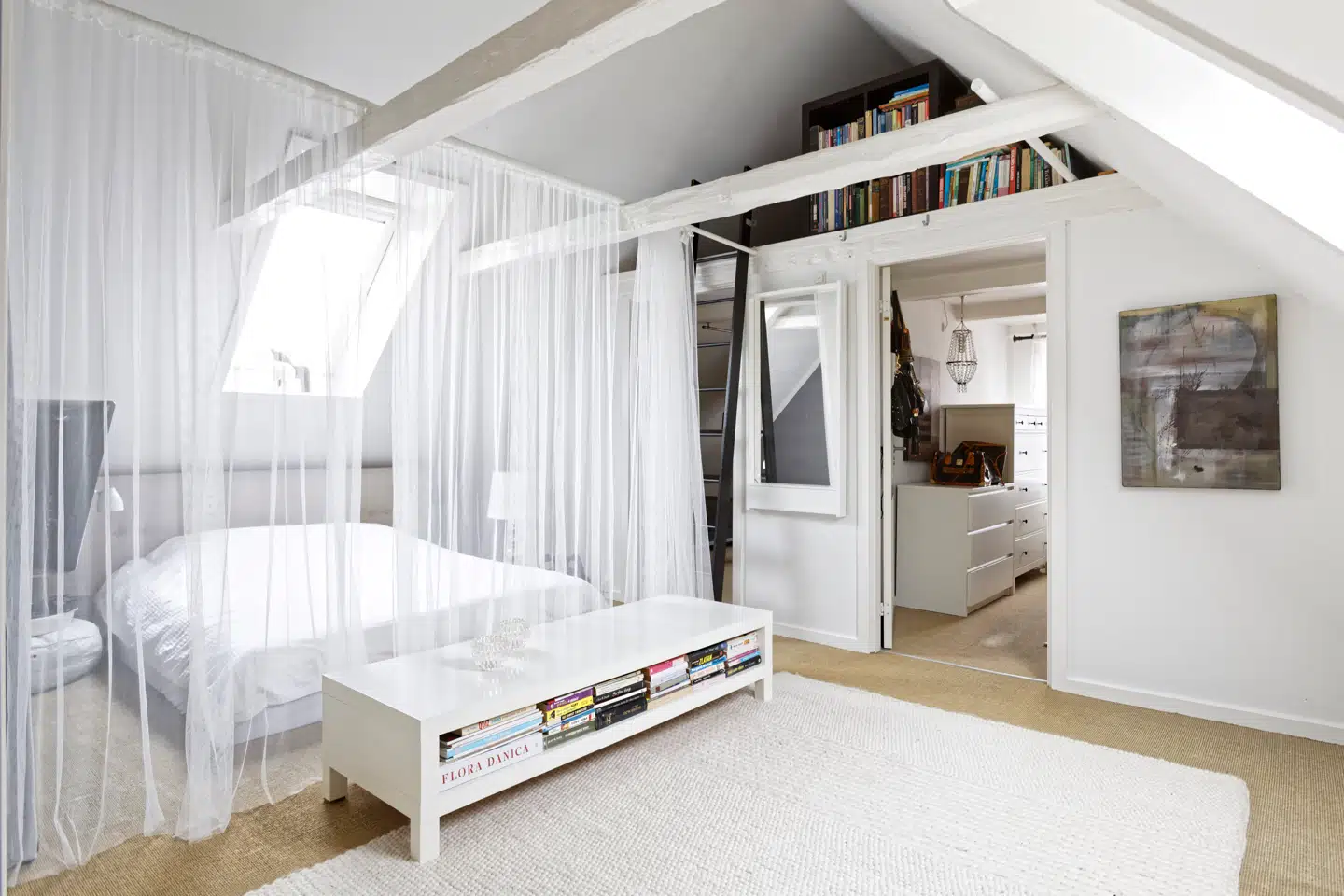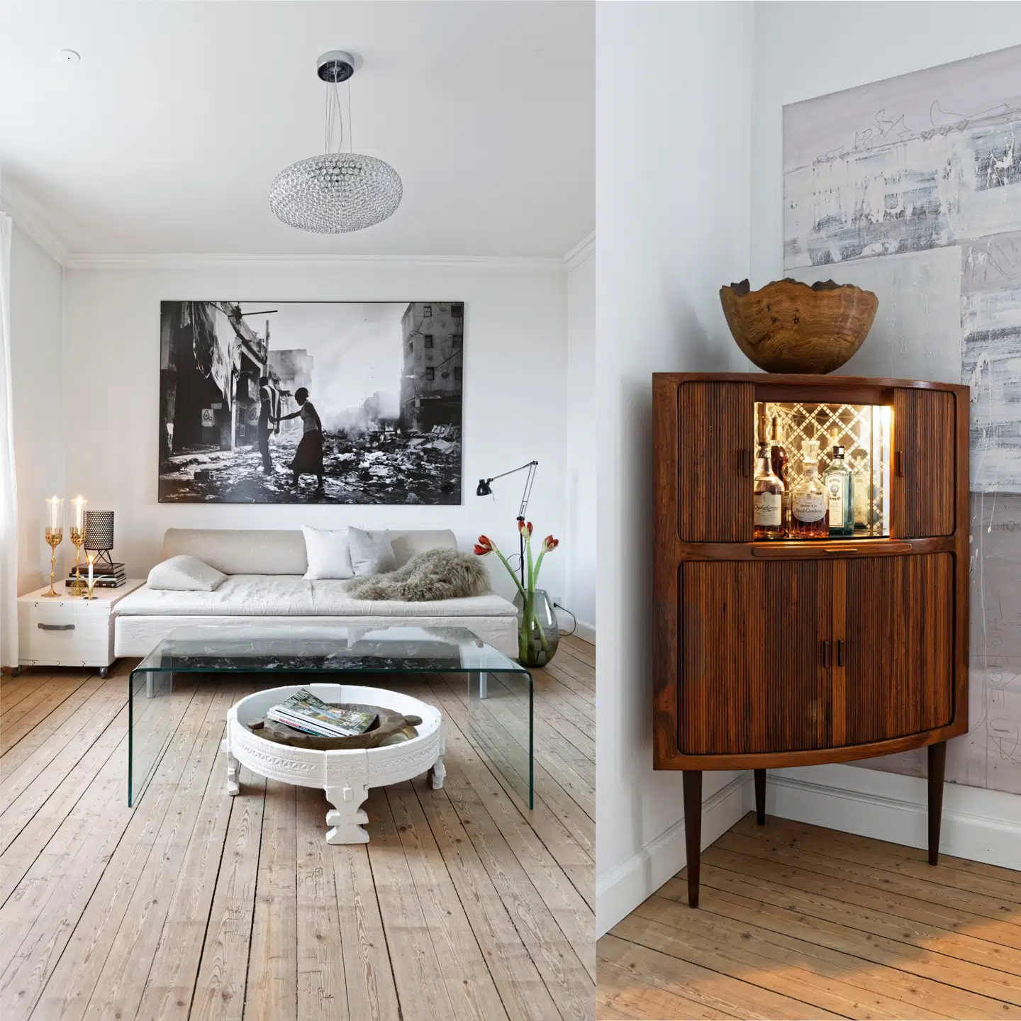»Ja, det gør jeg nok ubevidst. Som udlært dekoratør har jeg lært at skabe en illusion og pynte, så det ser lækkert ud, og kunderne får lyst til at købe. Imens jeg indretter herhjemme, slapper jeg af og nyder at style. Jeg kan lide at sætte mit præg og rykke rundt på ting og møbler, når familiens behov ændrer sig, og de voksne børn flytter. De første år havde vi soveværelse i et værelse ved stuen, hvor jeg i dag opbevarer diverse vintagetøj, jeg sælger ved home parties. Jeg er gået fra at være farveløs til at blive glad for farver. Og så tænker jeg altid over, at her ikke skal blive for feminint. Man skal også kunne se, at der er en mand i huset.«