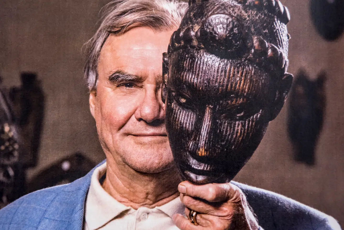 Den absolutte topsælger var dog en høj afrikansk maske af patineret træ, som er blot én af de mange masker, prins Henrik gennem sit liv faldt for. Men den har været særligt populær, fortæller David Utzon-Frank, fordi det er den, prins Henrik holder foran sit ansigt på det billede, som er på forsiden af auktionshuset katalog med alle genstandene fra auktionen.