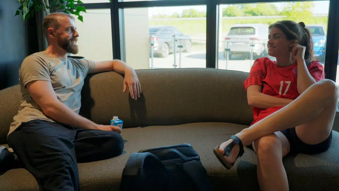 Det animerede pindsvin Børste tager sig til snuden og ømmer sig efter at have trådt på en ske. Lidt senere støder veninden Rut, en lille blå ugle, til. De to kammerater finder ud af at gynge på skeen i fællesskab.