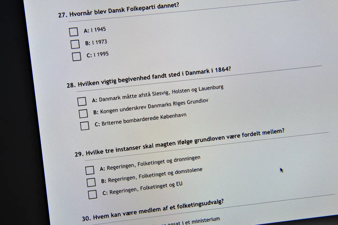 Det er et krav for at kunne søge om dansk statsborgerskab, at man svarer rigtigt på mindst 32 ud af de 40 spørgsmål i indfødsretsprøven, som blev afholdt onsdag.