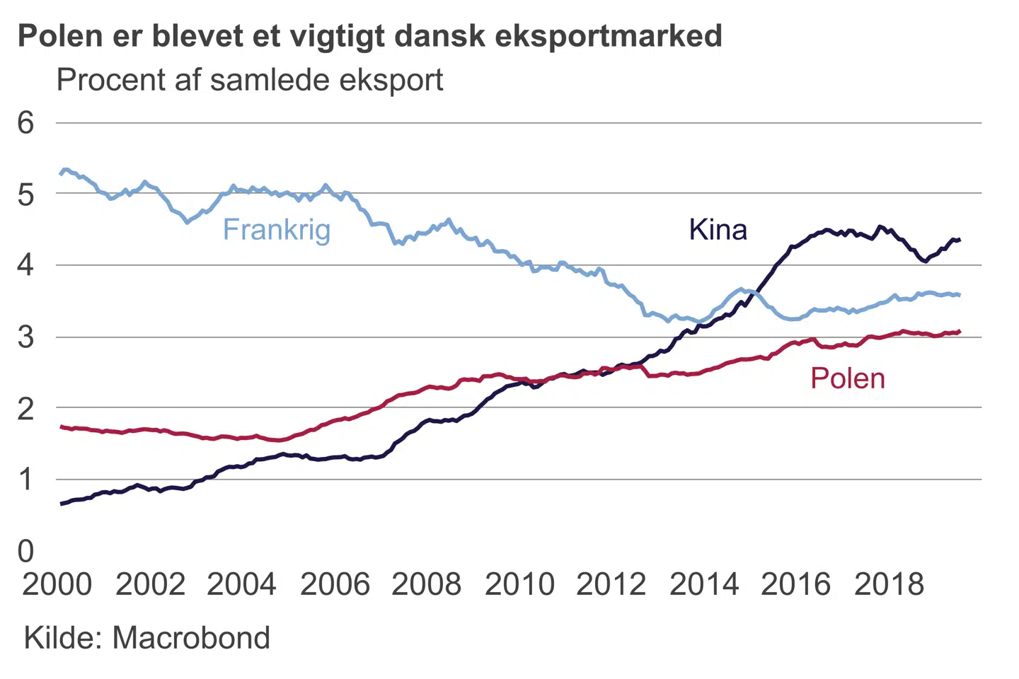 For Danmark har Østeuropas genoptagelse i den europæiske økonomi haft særlig stor betydning. Det er vores naboer, og vi er ingen undtagelse fra reglen om, at man handler mest med sine naboer. Polen er kravlet op over listen af vores vigtigste eksportmarkeder og modtager tre procent af vores vareeksport – en dobbelt så stor andel som i 2004. Litauen er blevet en særlig destination for investeringer og mange produktionsvirksomheder – også mindre – har afdelinger her.