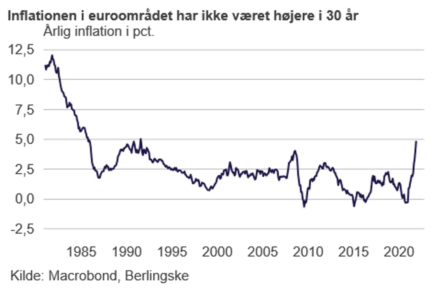 »Så får vi en løn-pris-spiral, og den kan begynde at accelerere, når inflationen kommer deropad. Det skal vi for alt i verden undgå, og det er jo derfor, vi har inflationsmålsætninger på omkring to procent,« forklarer Rangvid.