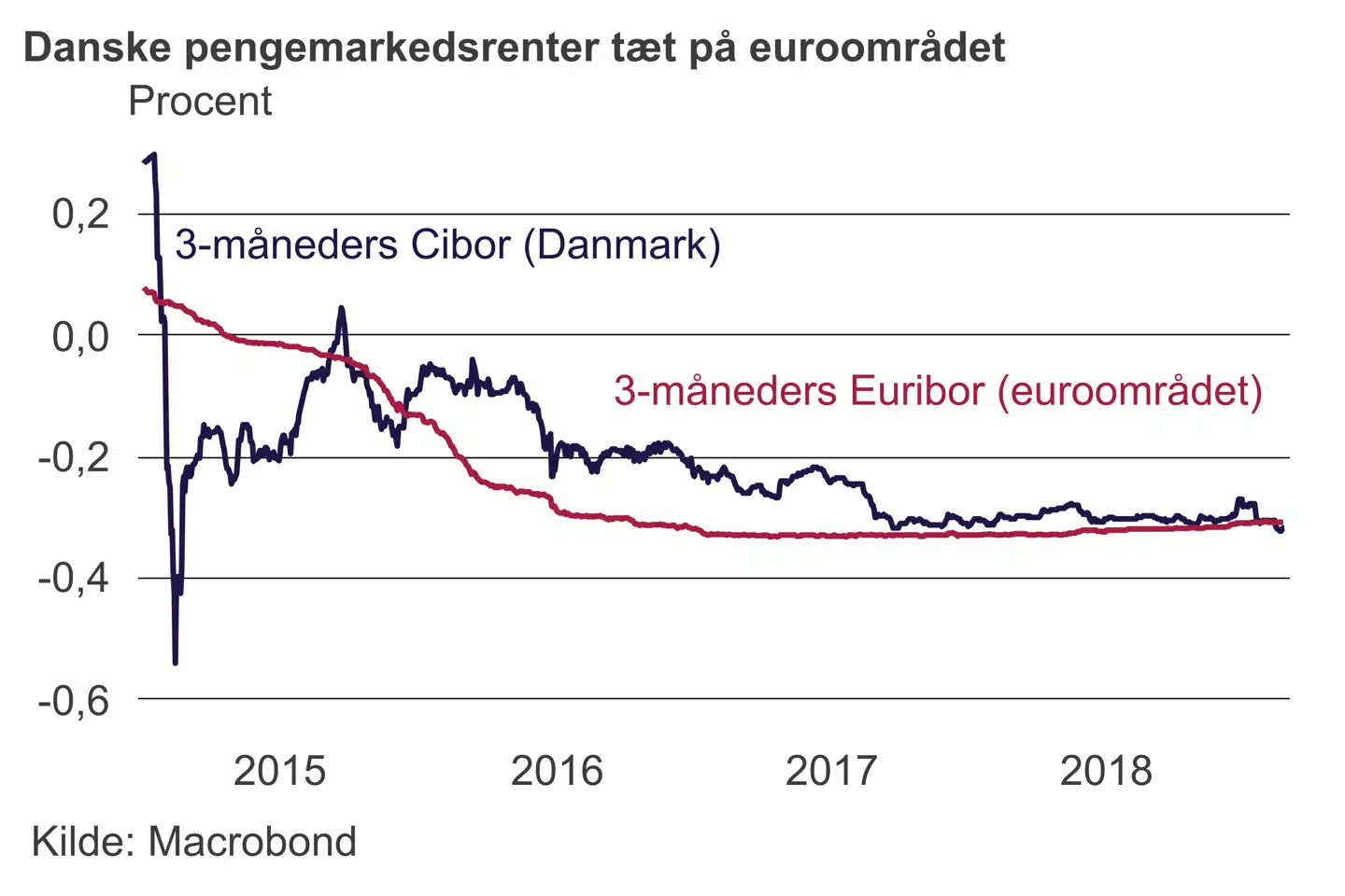 Mere præcist er eurorenten på minus 0,4 pct., mens Danmarks Nationalbanks indlånsrente er på minus 0,65 pct. Det er med til at give en negativ rente på de helt korte boliglån i Danmark og er ligeledes med til at give rekordlave renter på de fastforrentede boliglån.