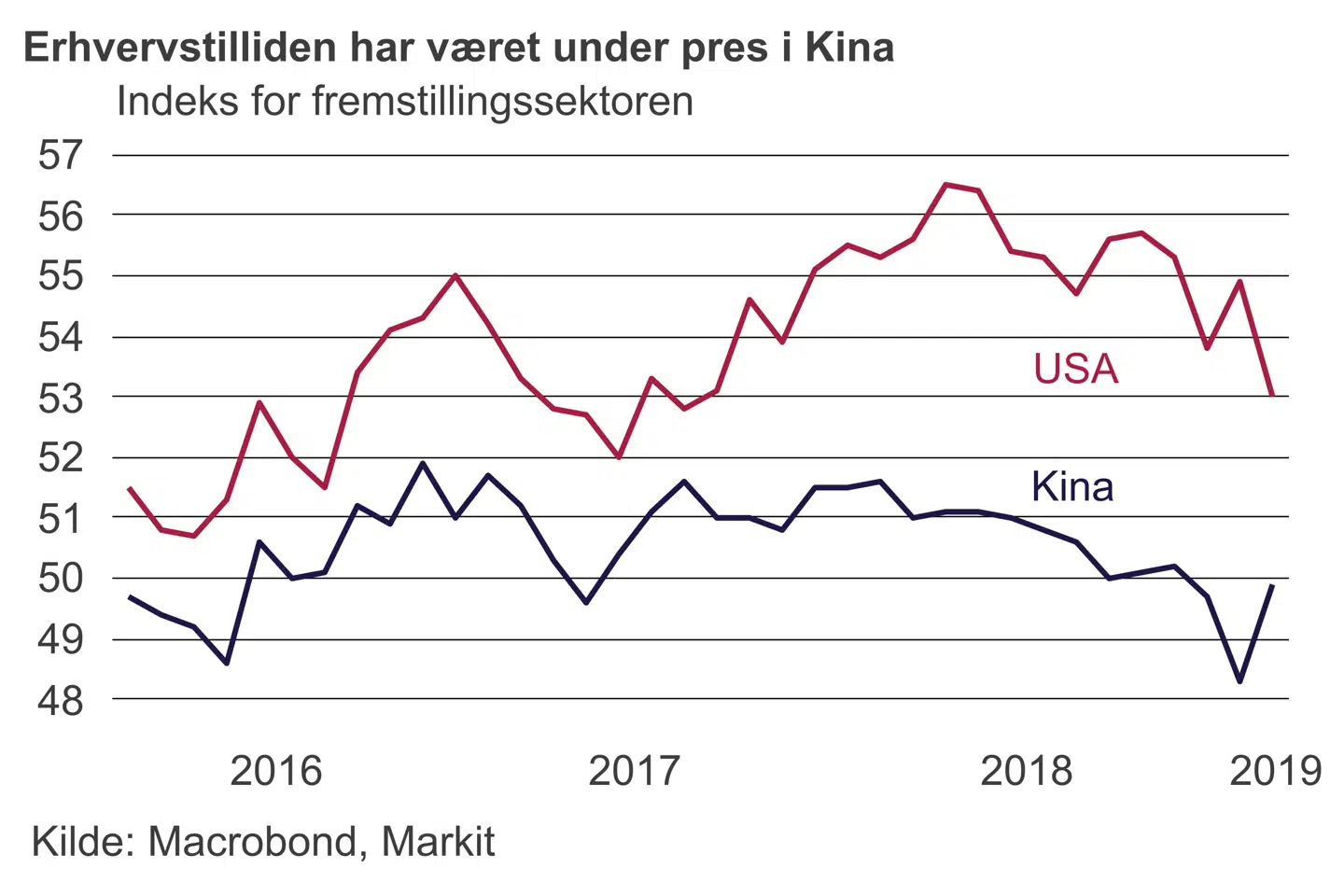Så er det officielt. Kina står over for »alvorligere og mere komplekse risici«, der både er »forudsigelige og uforudsigelige«. Det sagde den kinesiske premierminister Li Keqiang i sin indledende tale til årets folkekongres, hvor økonomi – som altid – var i højsædet. Regeringens mange tiltag for at sætte fart i den kinesiske økonomi viser, at præsident Trumps handelskrig gør ondt. Kinas eksport til USA er faldet kraftigt de seneste måneder, selv når der korrigeres for sæsonudsving omkring det kinesiske nytår.