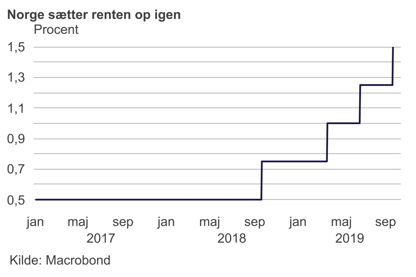 Samtidig er Norge et særsyn blandt vestlige centralbanker ved at fastholde en bevægelse mod et mere normalt renteniveau. Den svenske Riksbank satte renten op i december, men er gået i stå, efter at de store globale centralbanker ændrede kurs omkring nytår. Her er renten også fortsat negativ. De seneste uger har Den Europæiske Centralbank og den amerikanske Federal Reserve leveret nye pengepolitiske lempelser, mens Storbritannien, Japan og Schweiz indtil videre holder krudtet tørt, men med fingeren på aftrækkeren. Danmark fulgte med ECB og har nu verdens laveste rente på minus 0,75 pct.