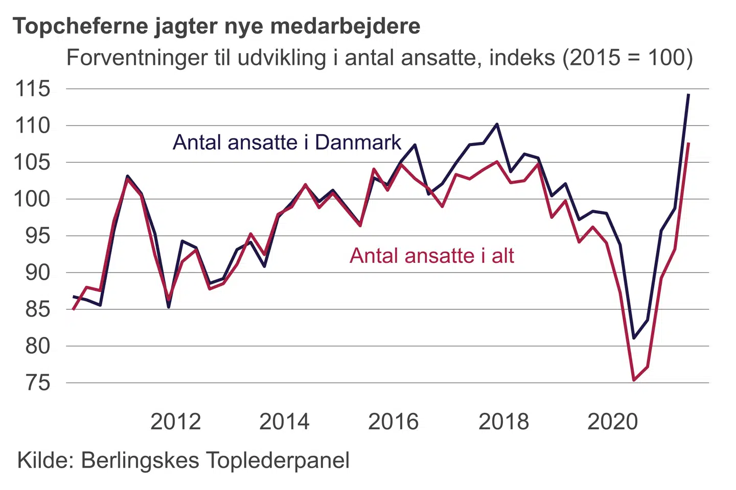 De danske topchefer forventer i hvert fald at skrue op for antallet af medarbejdere i de kommende måneder. Og det vil både komme til at ske inden- og udenfor landets grænser.