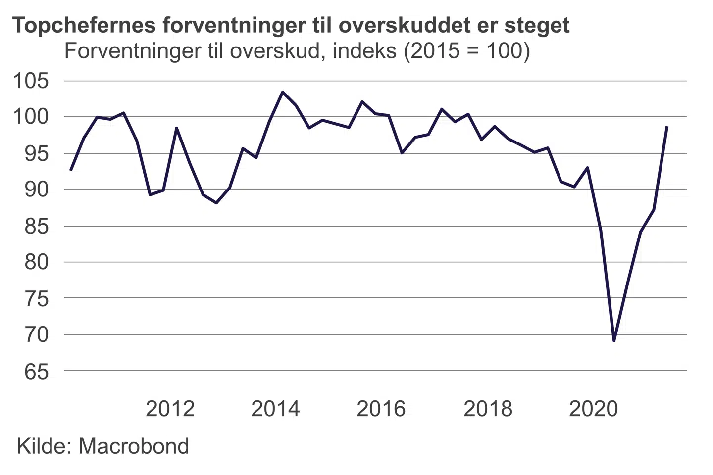 Hvis man ser på topchefernes forventninger til bundlinjen, tyder det på, at coronakrisen snart vil være visket helt væk fra den nederste linje i resultatopgørelsen.