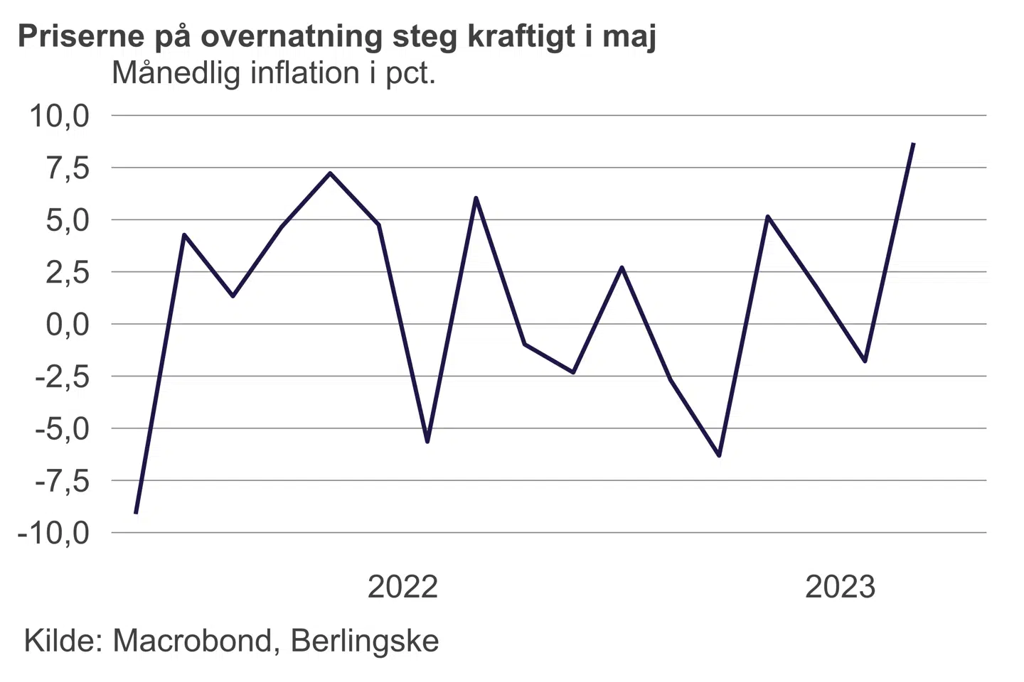 »Man kan i hvert fald konkludere, at overraskelsen for den svenske inflation i maj kom fra hoteller og restauranter. Og det er jo ret oplagt, at det har noget at gøre med den meget store begivenhed, som trak tusindvis af mennesker til Stockholm,« siger han.