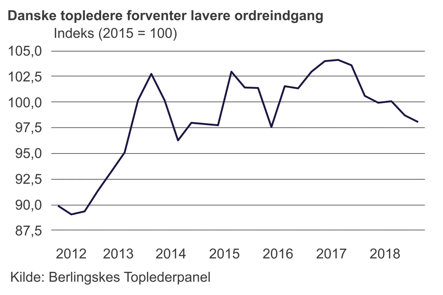 Industritilliden er nu tilbage på niveauet i slutningen af eurokrisen, og forventningerne til fremtiden er mørke. Mens forventningerne i sagens natur er mere usikre end vurderingen af den aktuelle situation, er forventningerne et vigtigt peljemærke for virksomhederne, når de skal træffe beslutninger om investeringer og nyansættelser.