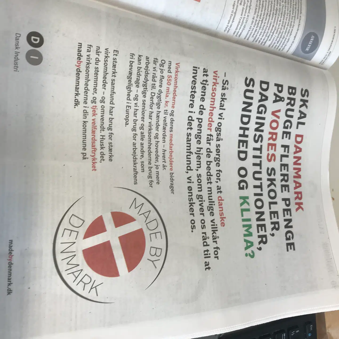 Dansk Industri blander sig i dag i en annonce i valgkampen. Vælgerne skal tænke på virksomhederne, når de stemmer. Desværre er DI faldet for venstrefløjens velfærdslogik og argumenterer på venstrefløjens præmisser.