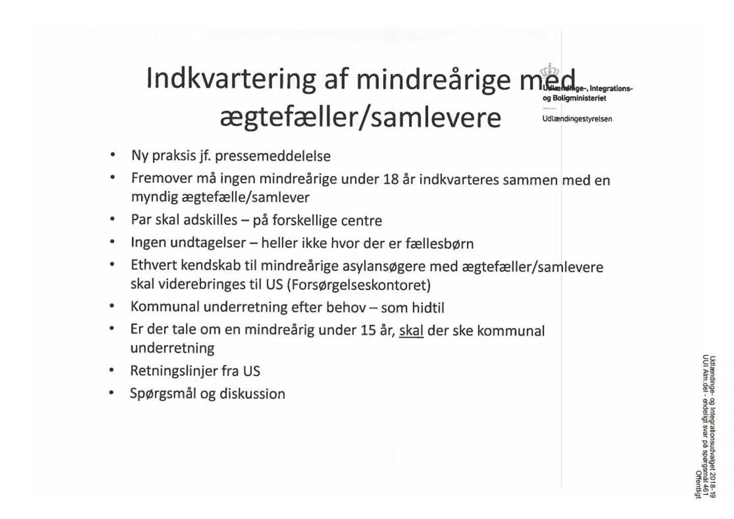 »Fremover må ingen mindreårige under 18 indkvarteres sammen med en myndig ægtefælle/samlever.«