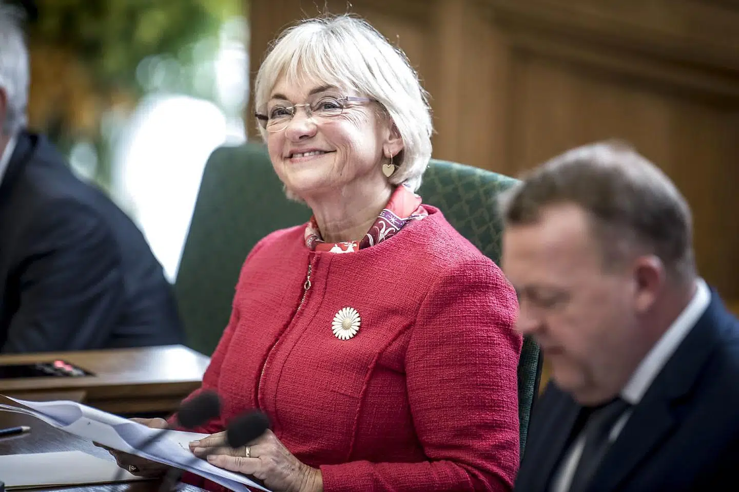 Pia Kjærsgaard rejser sig fra sin stol og siger bestemt: