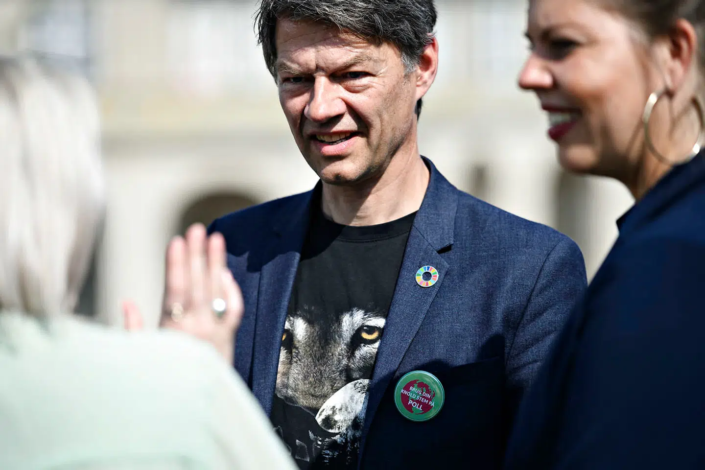 »Ro på. Ro på. Nej nej. Nej nej,« sagde Uffe Elbæk, iklædt hvid t-shirt med printet »Revolution«.