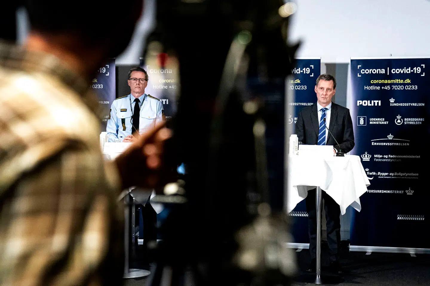 De var alle iført mundbind, da de onsdag omkring middagstid trådte ud på Finansministeriets stengang og gik de få meter hen til de ventende journalister.