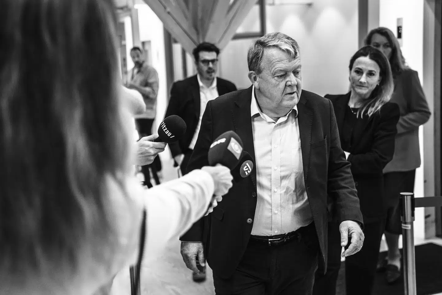Klokken var lidt over 13.00, da Lars Løkke Rasmussen stilfærdigt listede sig ud bag partifællen Henrik Frandsen foran Moderaternes gruppeværelse på Christiansborg.