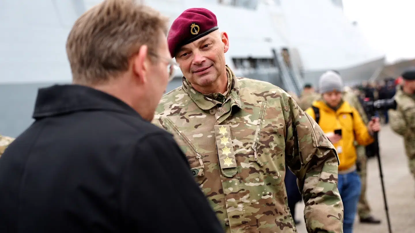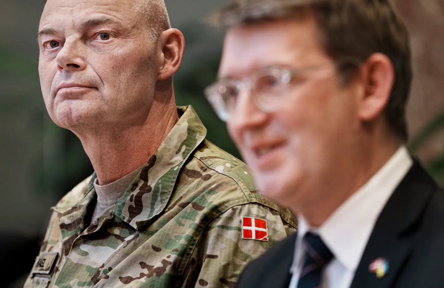 Omgivet af marmorvægge og franske døre var han flankeret af forsvarsminister Troels Lund Poulsen (V), som for rullende kameraer indledte en omkalfatring af det danske forsvar.