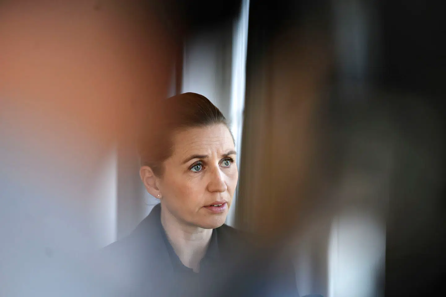 »Vi skal fordele os ud over døgnets timer. Vi skal forhindre myldretid i den kollektive trafik, og når vi går på arbejde, er det nødt til at være på en anden måde, end vi er vant til,« siger Mette Frederiksen på pressemødet.