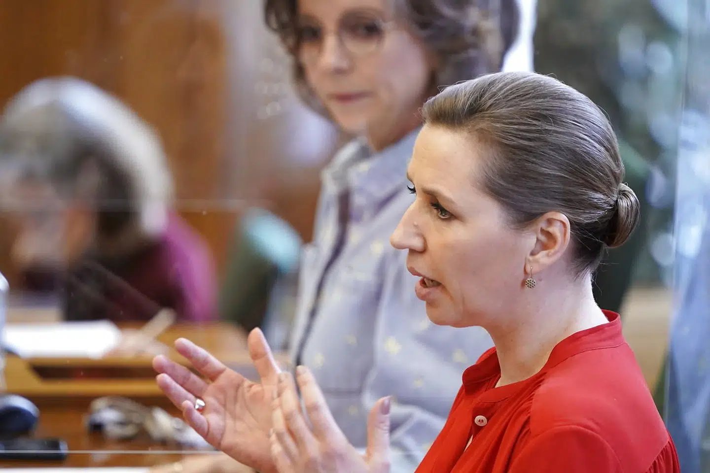 »Eventuelt klassificeret materiale kommer jeg ikke til på noget tidspunkt at udtale mig om, værsgo,« sagde Mette Frederiksen og pegede på en anden journalist i gruppen, som Berlingskes journalist dog nåede at komme i forkøbet.