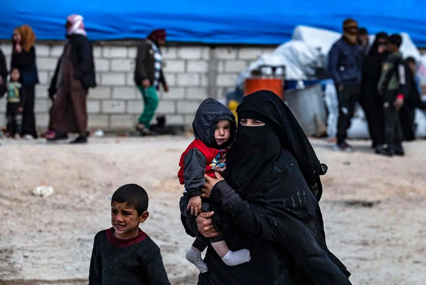 Udenrigsministeriet kender til 19 børn, der enten er født af eller har tilknytning til danske eller tidligere danske statsborgere, som opholder sig i de to fangelejre al-Hol og al-Roj i Syrien. De er børn af seks mødre. Delil Souleiman/AFP/Ritzau Scanpix