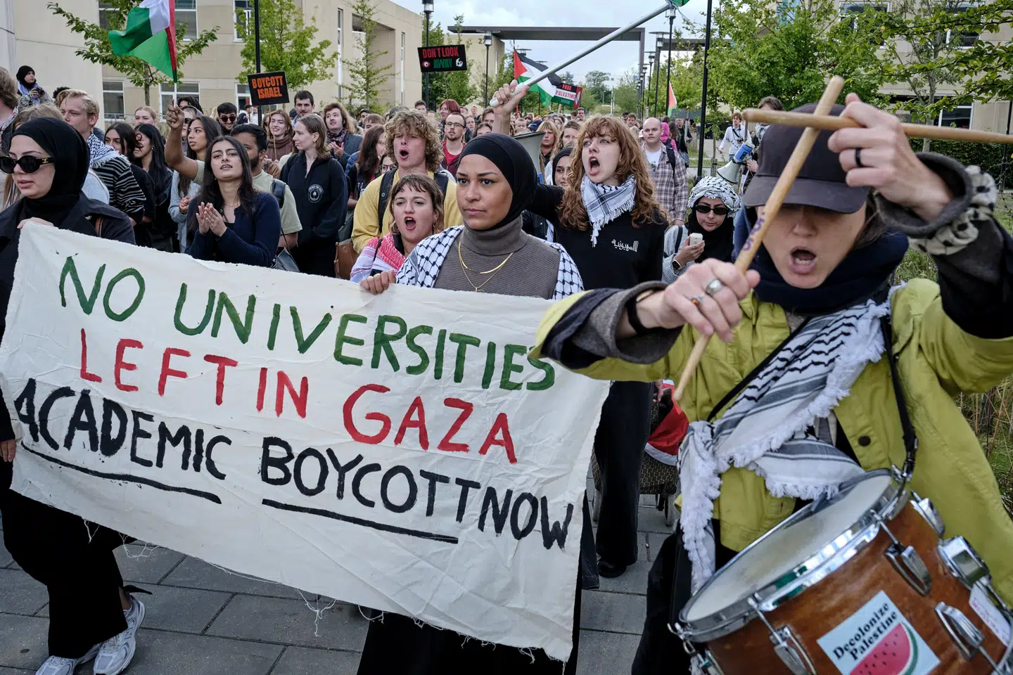 Her blev den nu afdøde leder af terrorbevægelsen Hamas Yahya Sinwar hyldet med graffiti, og flere steder stod der, at man skal være »bange«, hvis man er zionist.