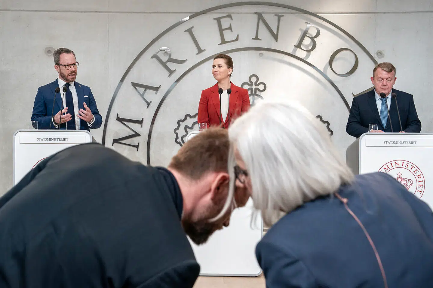 Onsdag formiddag gentog historien sig på Marienborg, hvor Mette Frederiksen (S) – flankeret af Jakob Ellemann-Jensen (V) og Lars Løkke Rasmussen (M) – præsenterede regeringsgrundlaget for den nye SVM-regering.