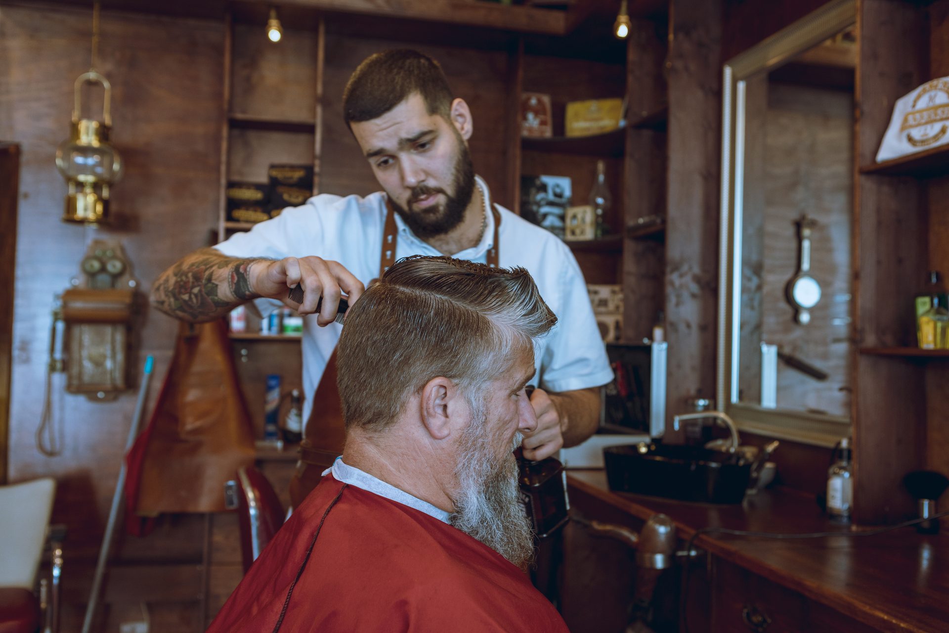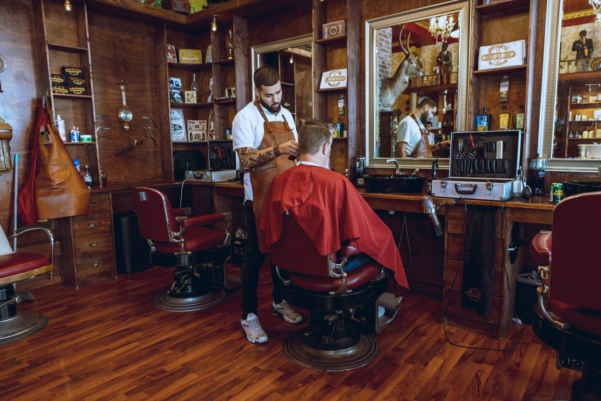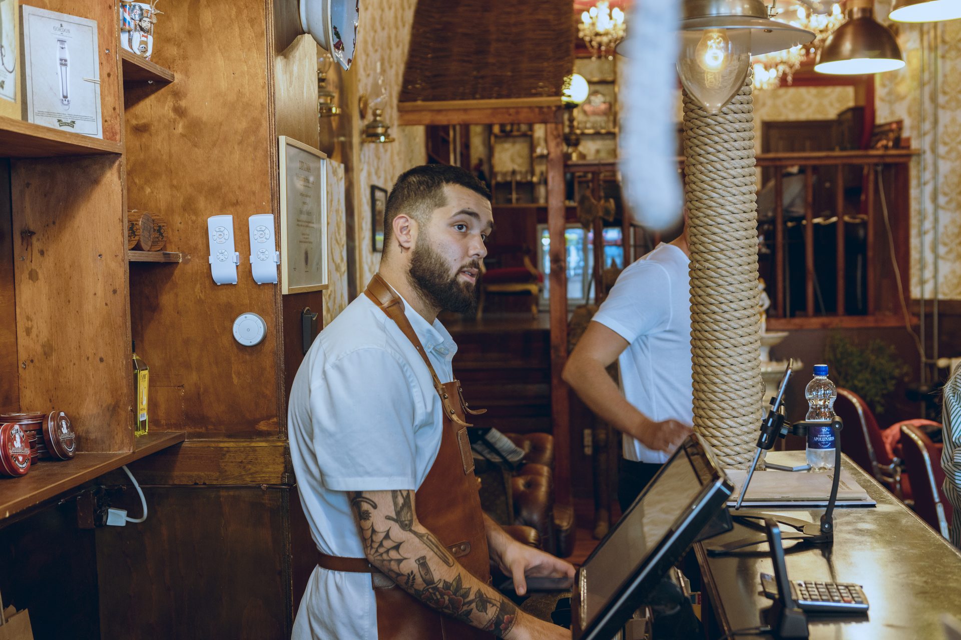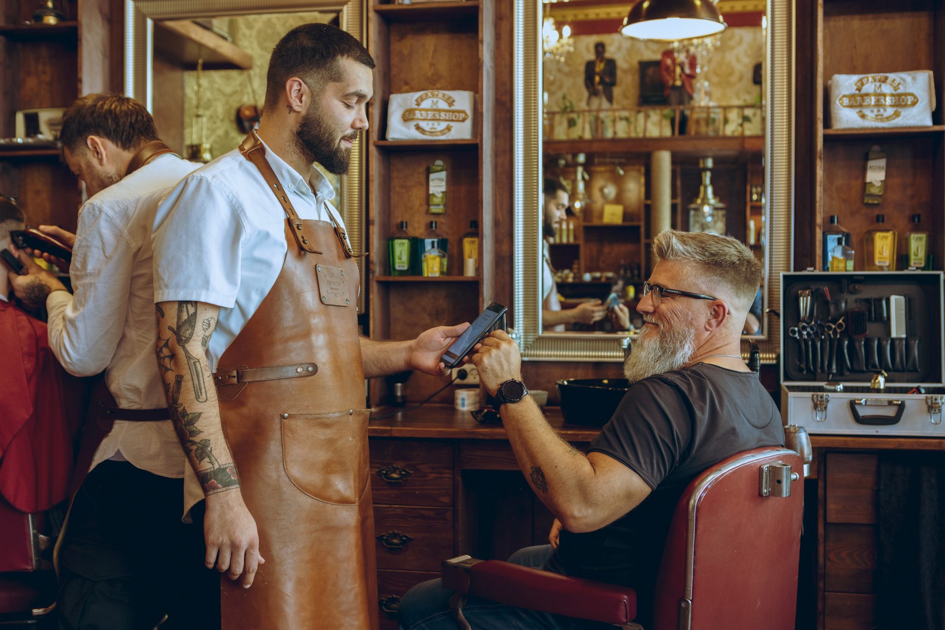 Der er halvfjerdser stemning i barbarshoppen, men betalingsteknologien er ultra moderne