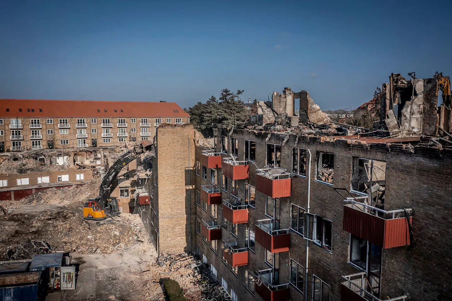 Arbejdet både med efterslukningen og nedrivningen har betydet, at dele af Grøndals Parkvej og Godthåbsvej har været spærret af.