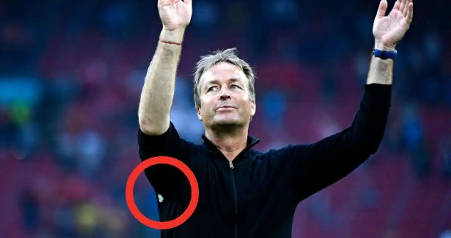 Og det blev der også lagt mærke til på de sociale medier efter en jubel, hvor landstræneren fik armene tilpas højt op til, at man kunne se den ødelagte trøje.