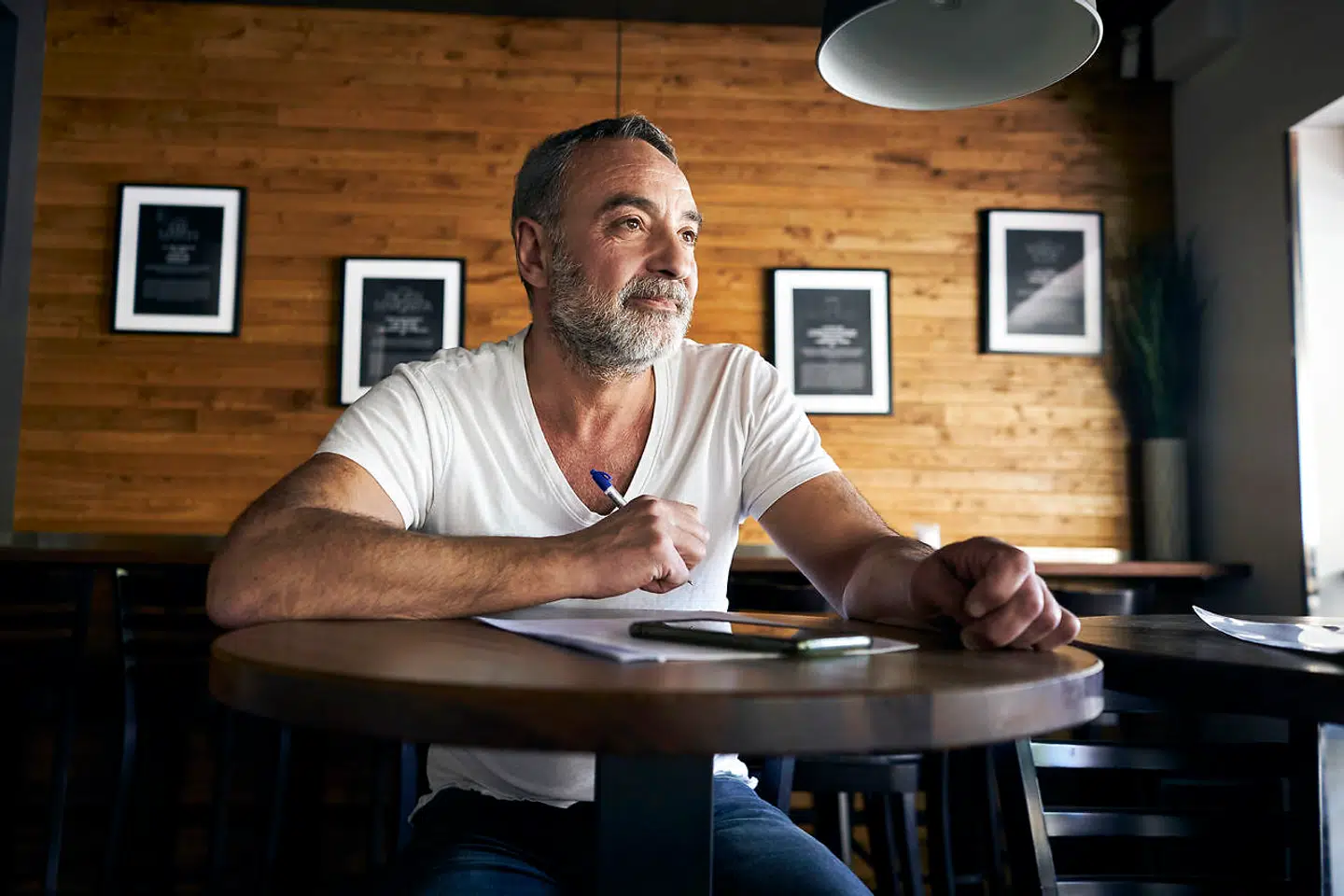 På Lilla Torg i Malmø inde i cafeen La Grappas mørke sidder ejeren, Dzijat Redzep, med sin smartphone og papirer foran sig.