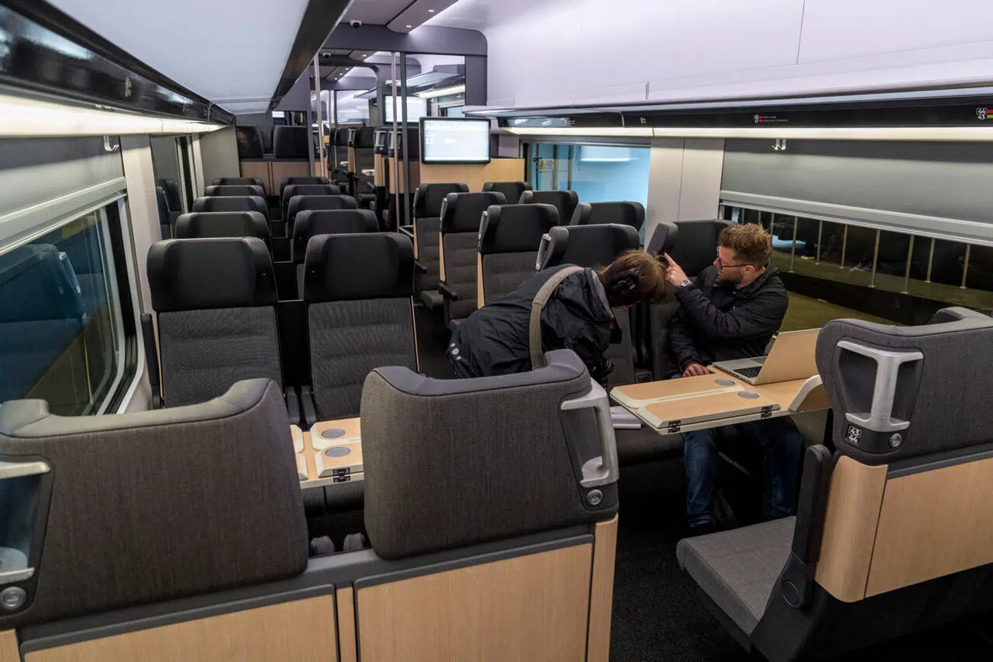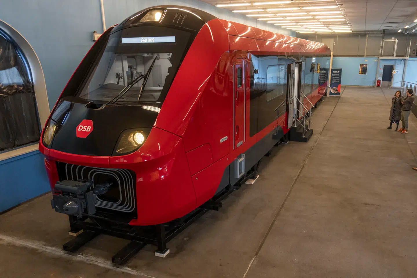 DSB har torsdag for pressen præsenteret en 1:1-skalamodel af det kommende tog inklusive borde, sæder og andet interiør efter DSBs design- og farvevalg.