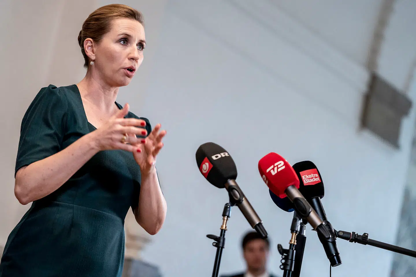 Her præsenterede regeringen en stramning af coronabekæmpelsen, som blandt andet omfatter flere krav om brug af mundbind og en skærpelse af forsamlingsforbuddet.