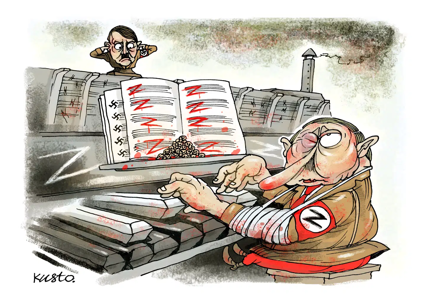 Oleksiy Kustovsky (f. 1971 i Kyiv) er selvlært tegner. Han fik sin første tegning offentliggjort i 1998 og har siden vundet en lang række priser. Han har siden 2004 arbejdet som illustrator for Holos Ukrainy, en avis som udgives af det ukrainske parlament. Siden den russiske invasion af Krim i 2014 har han også samarbejdet med Radio Free Europe/Radio Liberty, der er finansieret af den amerikanske stat. Han bor i Vyshneve i udkanten af Kyiv.