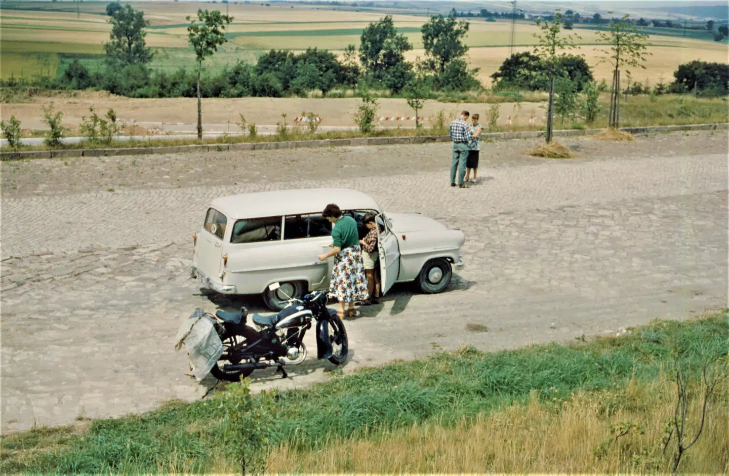 En lang lige vej med flere kameler end biler – og så dér midt i billedet et busstoppested, der ligner en pavillon fra en forlystelsespark.