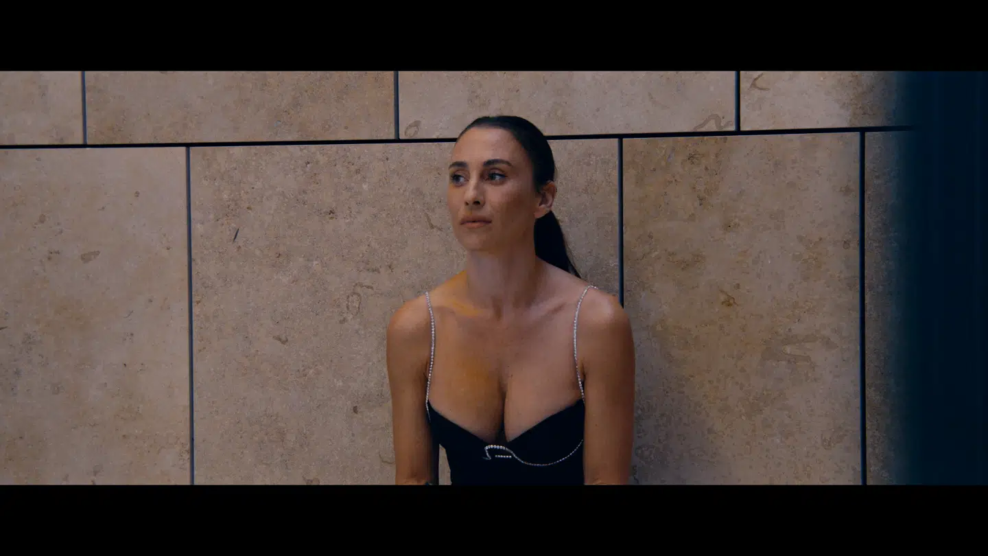 Med en stærk og muskuløs arm fastholder han kvinden, der ligger under ham. Hendes kjole er skubbet til side og afslører et par lange, nøgne ben. Hun kigger væk, som forsøger hun at tænke på noget andet. Tre mænd kigger på. Det ligner en gruppevoldtægt, men det er en reklame.