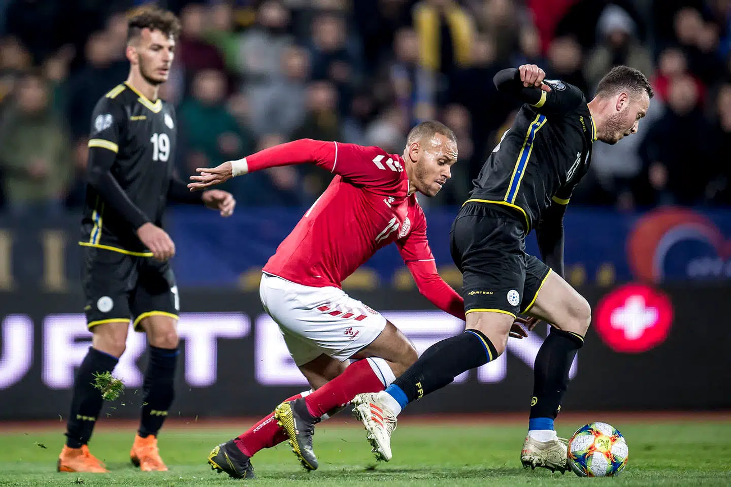 Efter at have været bagud 0-1 ved pausen udlignede indskiftede Christian Eriksen i det 63. minut på et straffespark blot for at landstræneren kunne se, at Kosovo atter var i front kort efter. Føringen varede til tillægstiden, hvor Pierre-Emile Højbjerg udlignede til 2-2.