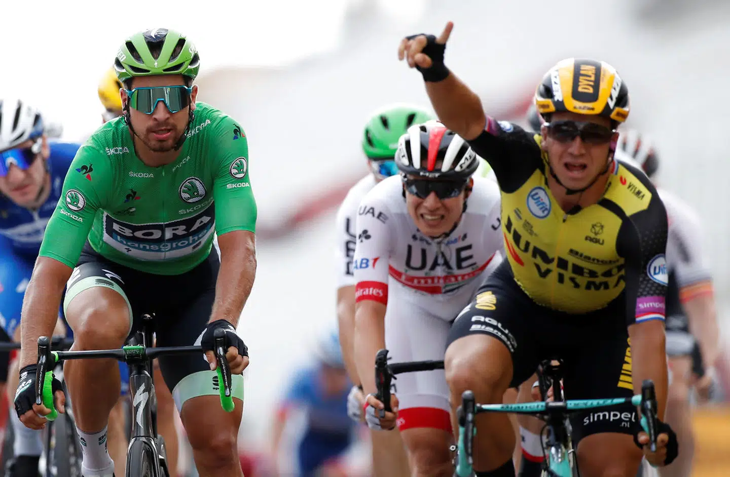 På sidste stigning forsøgte flere af dem at stikke af, og det lykkedes både sidste års vinder, Geraint Thomas, og Thibaut Pinot at hente nogle få sekunder på de øvrige på det allersidste stykke af stigningen mod målstregen.