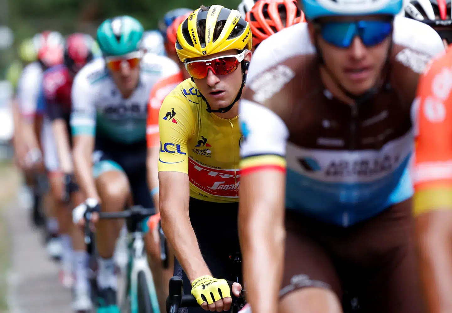 Julian Alaphilippe (Quick-Step) i den gule trøje kæmpede på den sidste stigning for at minimere tidstabet til Ciccone, der var den af udbryderne, der lå bedst placeret samlet.