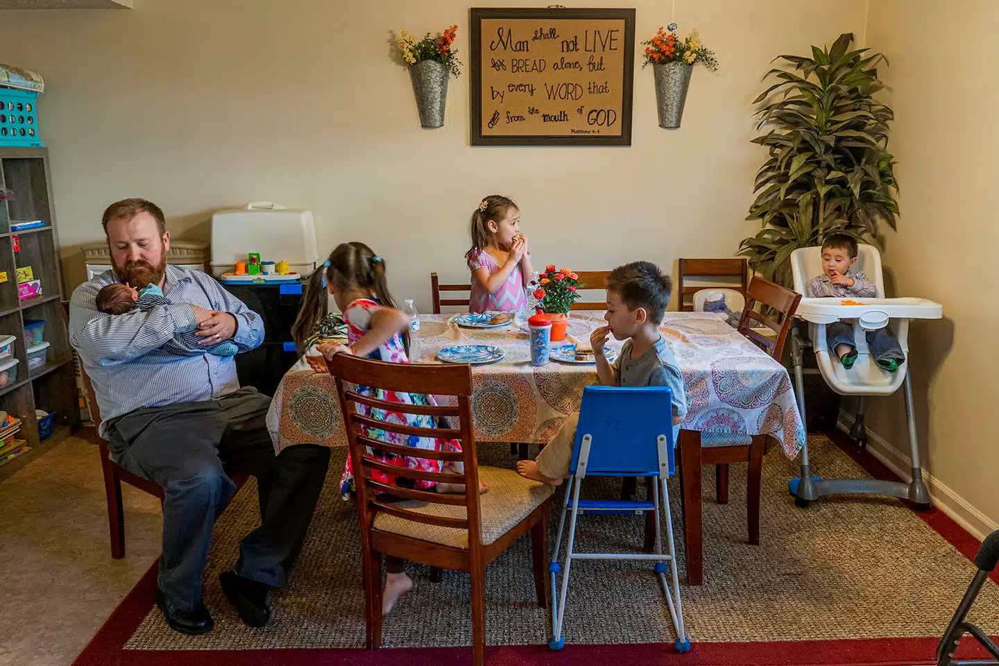 Selv har den 52-årige guvernør og hans kone Glenna ni børn, herunder fire adopterede.