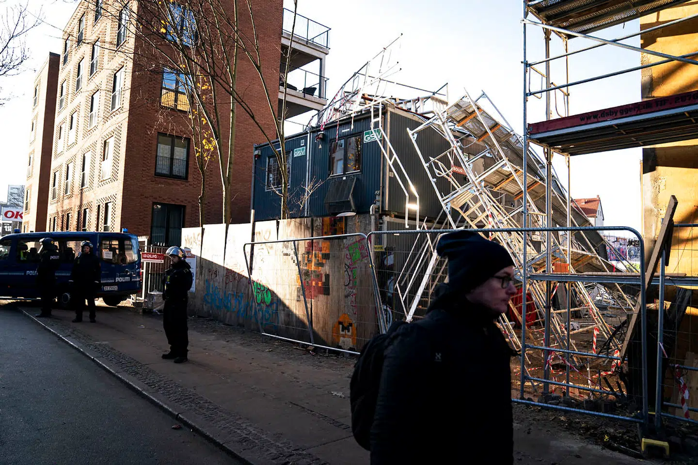 Til Berlingske oplyser Københavns Politi, at selve sagen om nedrivningen af stilladset stadig verserer.